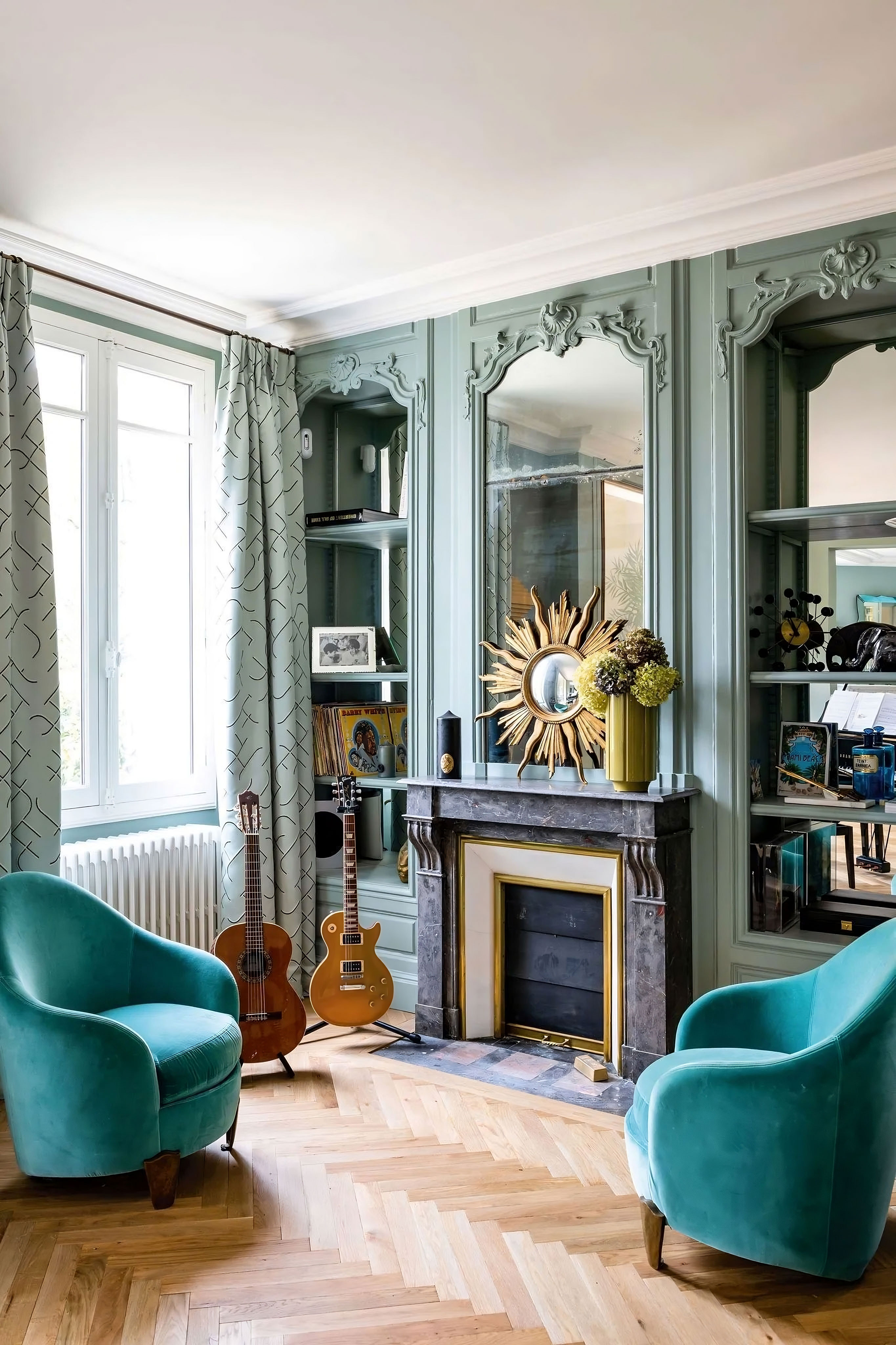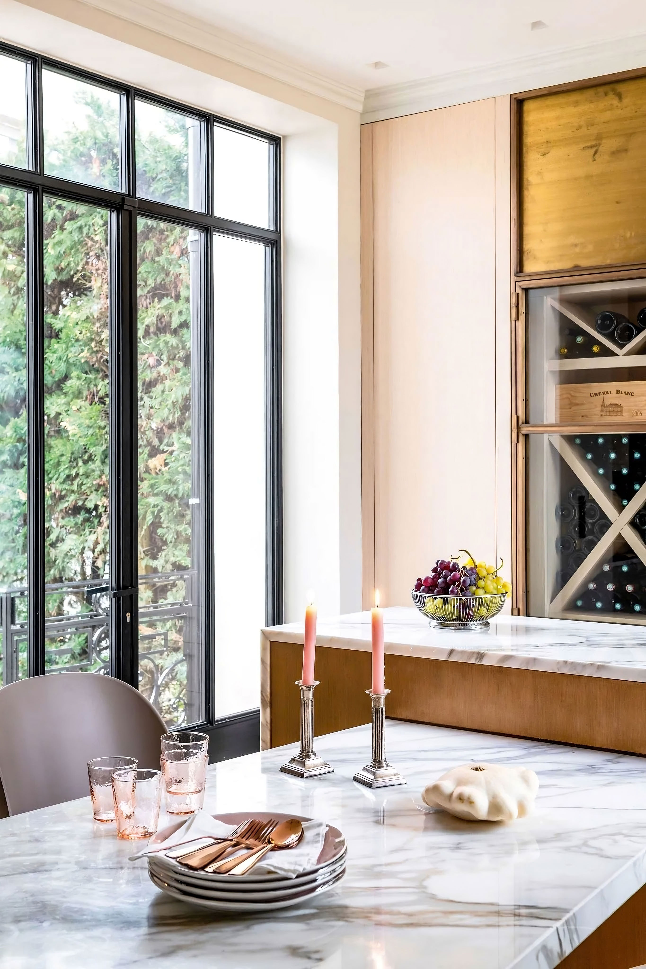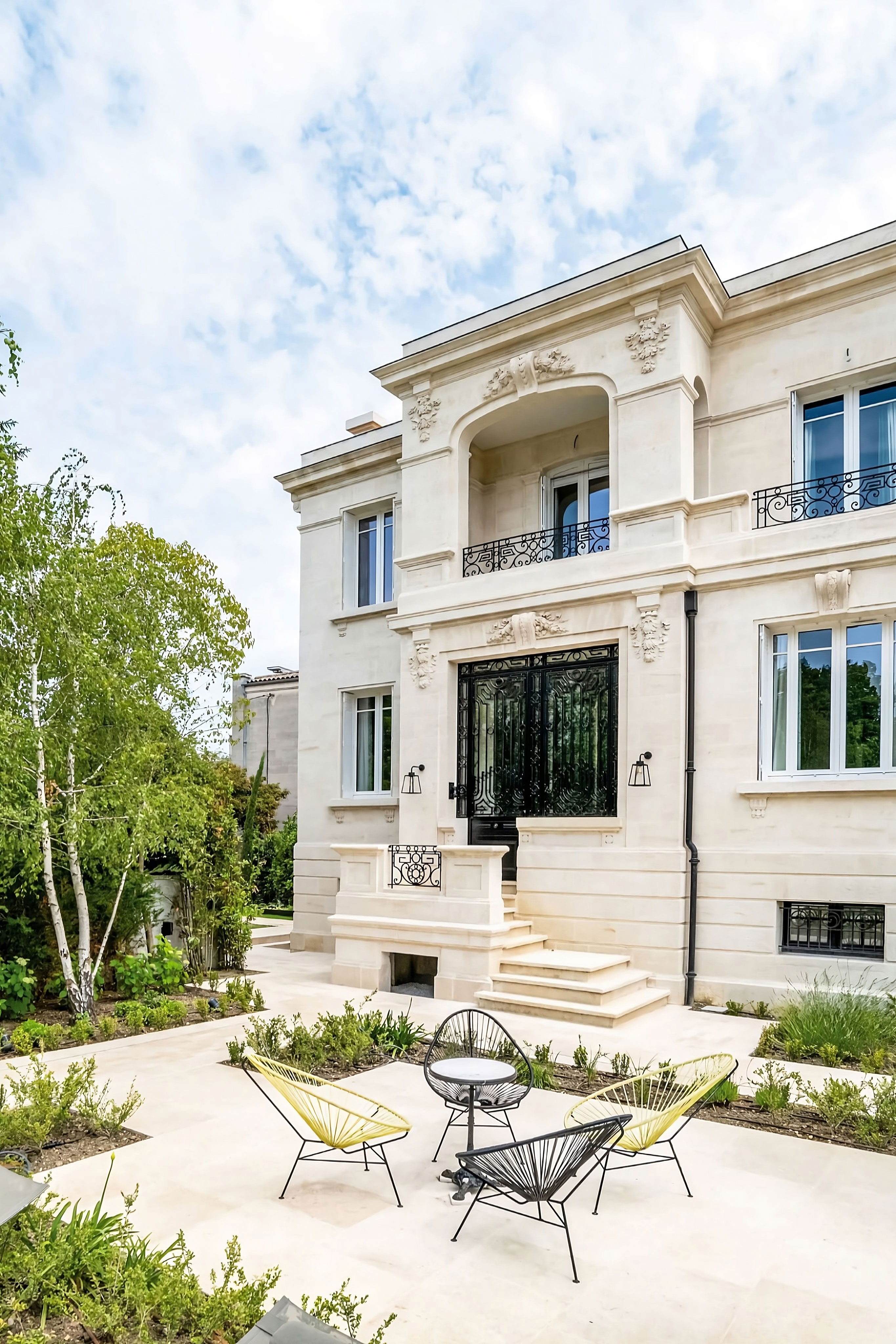 ProjetPour ce projet d'aménagement de mobilier sur mesure d'un hôtel particulier des années 30 de Bordeaux, la décoratrice Nicole Joinau a mené une restauration minutieuse avec l'aide d'artisans d'art pour redonner vie à cette magnifique propriété. Le propriétaire, qui avait déjà collaboré avec Nicole Joinau pour la restauration de précédentes maisons, souligne le soin apporté aux détails. Les éléments d'époque les plus intéressants ont été conservés, tels que la porte d'entrée, le vitrail de l'escalier, les cheminées et les boiseries du salon. Les pièces de designers et les matières nobles ont été utilisées pour créer une ambiance intime teintée de féerie. Le mobilier sur mesure, y compris la cuisine, le salon, les dressings et les salles de douche, a été réalisé par nos soins. La ferronnerie a été conçue par Julien Castilla-Madrigal, qui a accompli un travail remarquable sur les portes de la cuisine et de la cave à vin. Le résultat est une partition bien orchestrée qui met en avant la vision artistique de Nicole Joinau.